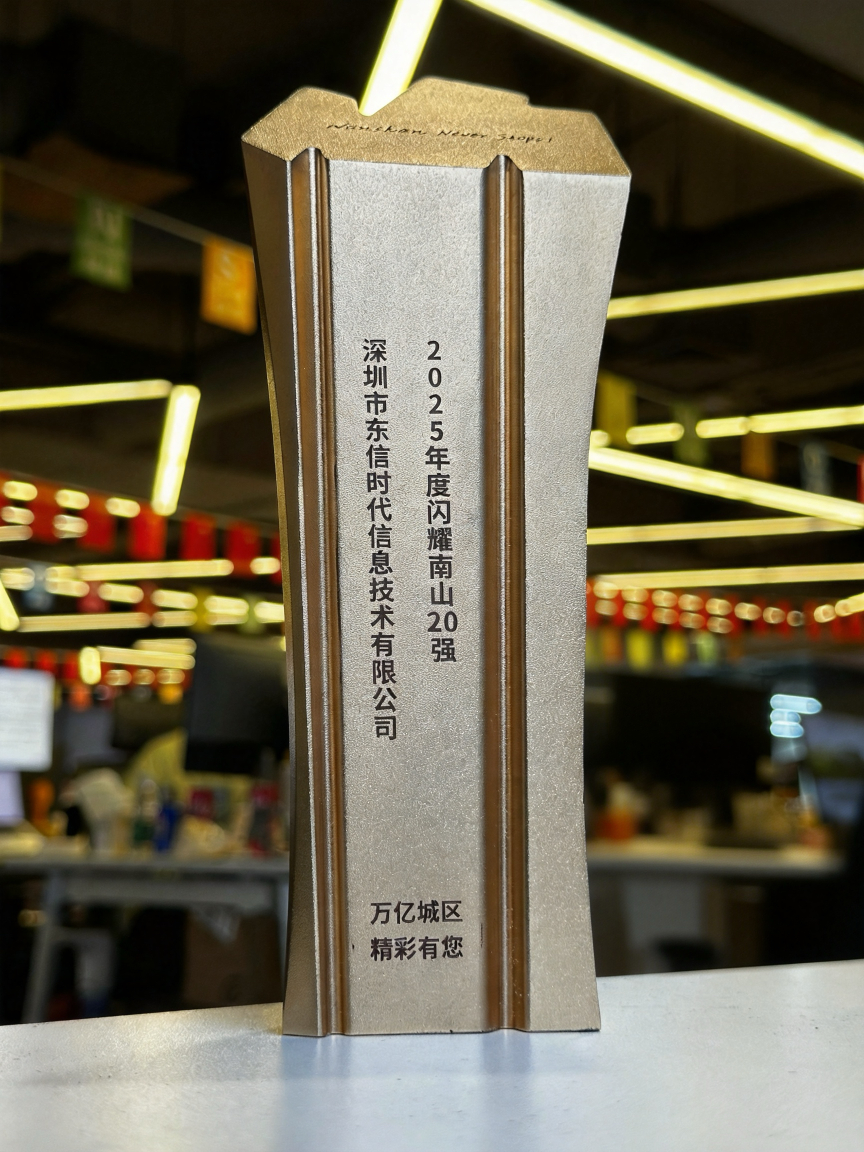凭借2025年度对南山区经济社会发展作出的突出贡献,东信营销科技集团旗下深圳市东信时代信息技术有限公司(简称“东信”)荣获“闪耀南山20强”,与腾讯、中兴、大疆等业界翘楚一同位列榜单,这是南山区政府对我们创新实力、产业价值与社会担当的高度认可。